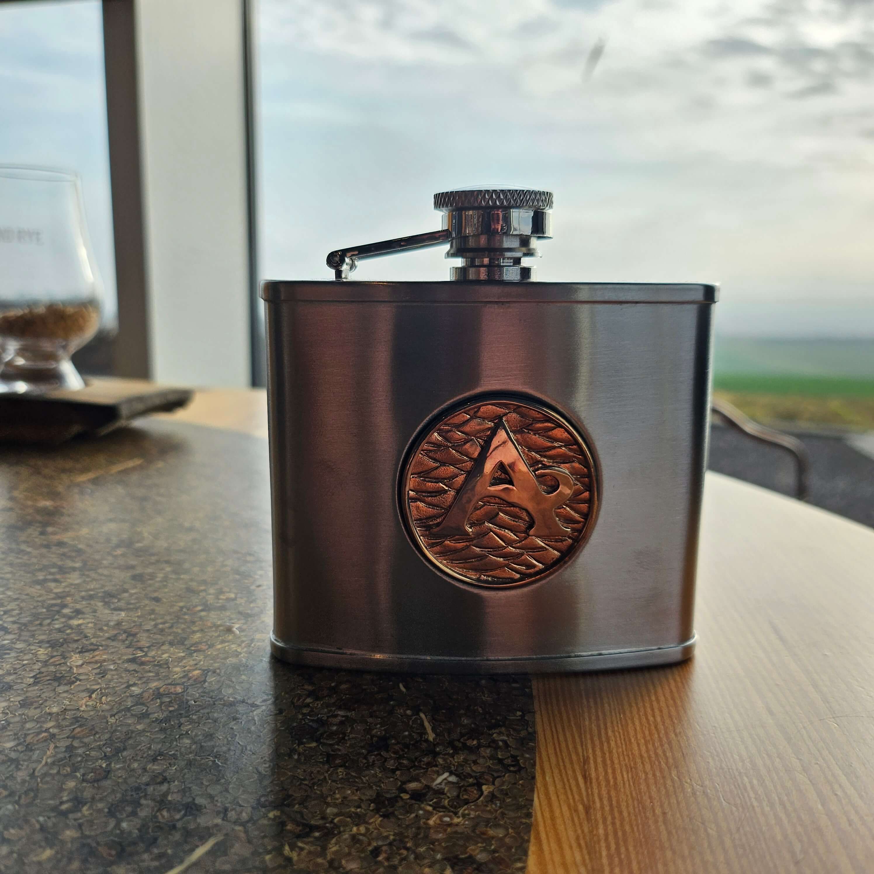 Elegant yet rugged, it’s engraved with the Arbikie insignia - a subtle mark of Scottish heritage and distinction. Designed to slip effortlessly into a pocket or bag, it’s perfect for carrying your favourite Arbikie spirit wherever the moment takes you.